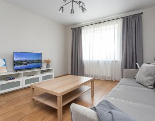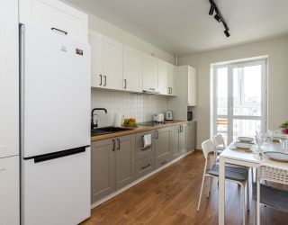 Апартаменты расположились в многоэтажном жилом доме нового жилого комплекса на улице Октябрьской. В распоряжении гостей однокомнатный 2-местный номер со светлым интерьером и балконом. Среди удобств – кухня с электроплитой, посудомоечной машины, электрочайником, микроволновой печью, холодильником, стиральная машина, кондиционер, телевизор-ЖК и высокоскоростной интернет, санузел с ванной.